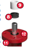 ❾ Втулка выполняет функцию осевого подшипника скольжения. Изготовлена из полиацеталя, сочетающего высокий модуль упругости при растяжении и изгибе с достаточно большой ударной вязкостью, хорошими антифрикционными характеристиками, высокой стойкостью по отношению к агрессивным средам.