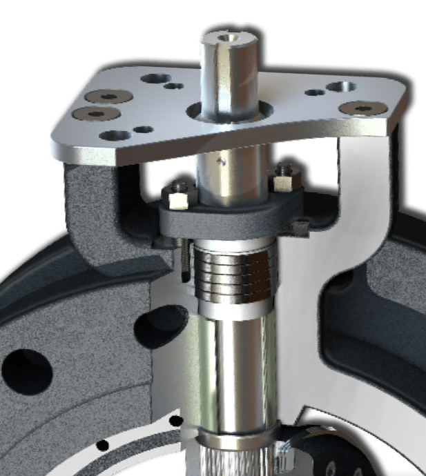 Узел фиксации штока расположен над сальниковым узлом вне зоны воздействия давления, что соответствует международным стандартам. В соответствии с API 609 каждый шток имеет индикацию положения диска/уплотнения.